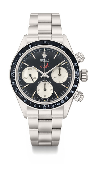 Die "Qaboos" Daytona ist ein Beispiel für die Gegenüberstellung zwischen Seltenheit und Bedingung. In einer sehr kleinen Charge auf Anfrage aus dem Sultan von Oman gemacht, ist dieses besondere Beispiel in neuen alten Lager ungetragen Zustand, und wieder mit einem speziell gemacht Zifferblatt mit nicht nur die rote arabische Schrift auf dem Zifferblatt, sondern mit "COSMOGRAPH", wo " DAYTONA "ist in der Regel, sowie einzigartige Platzierung des Textes" ROLEX OYSTER ".